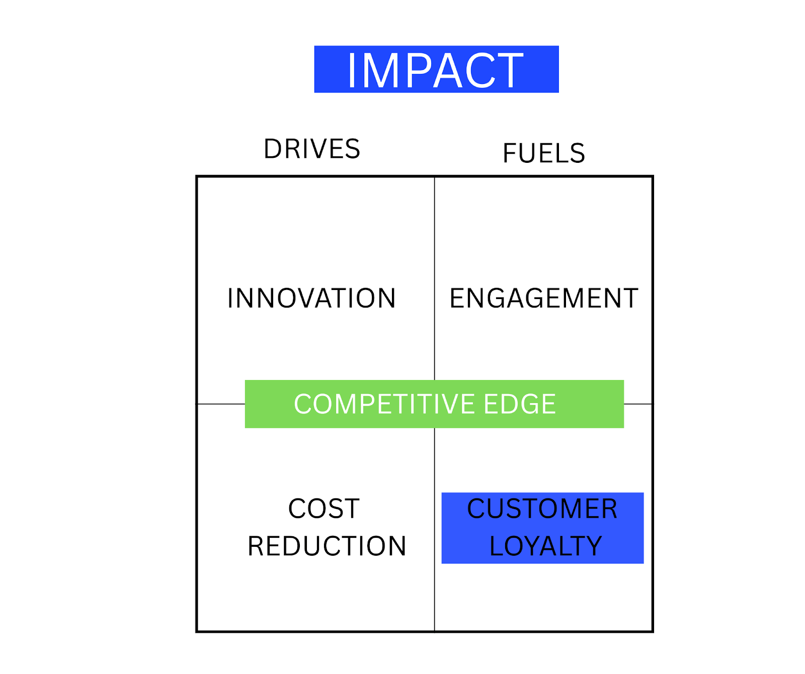 In the context of this series, customer loyalty completes the picture of how impact translates into competitiveness.